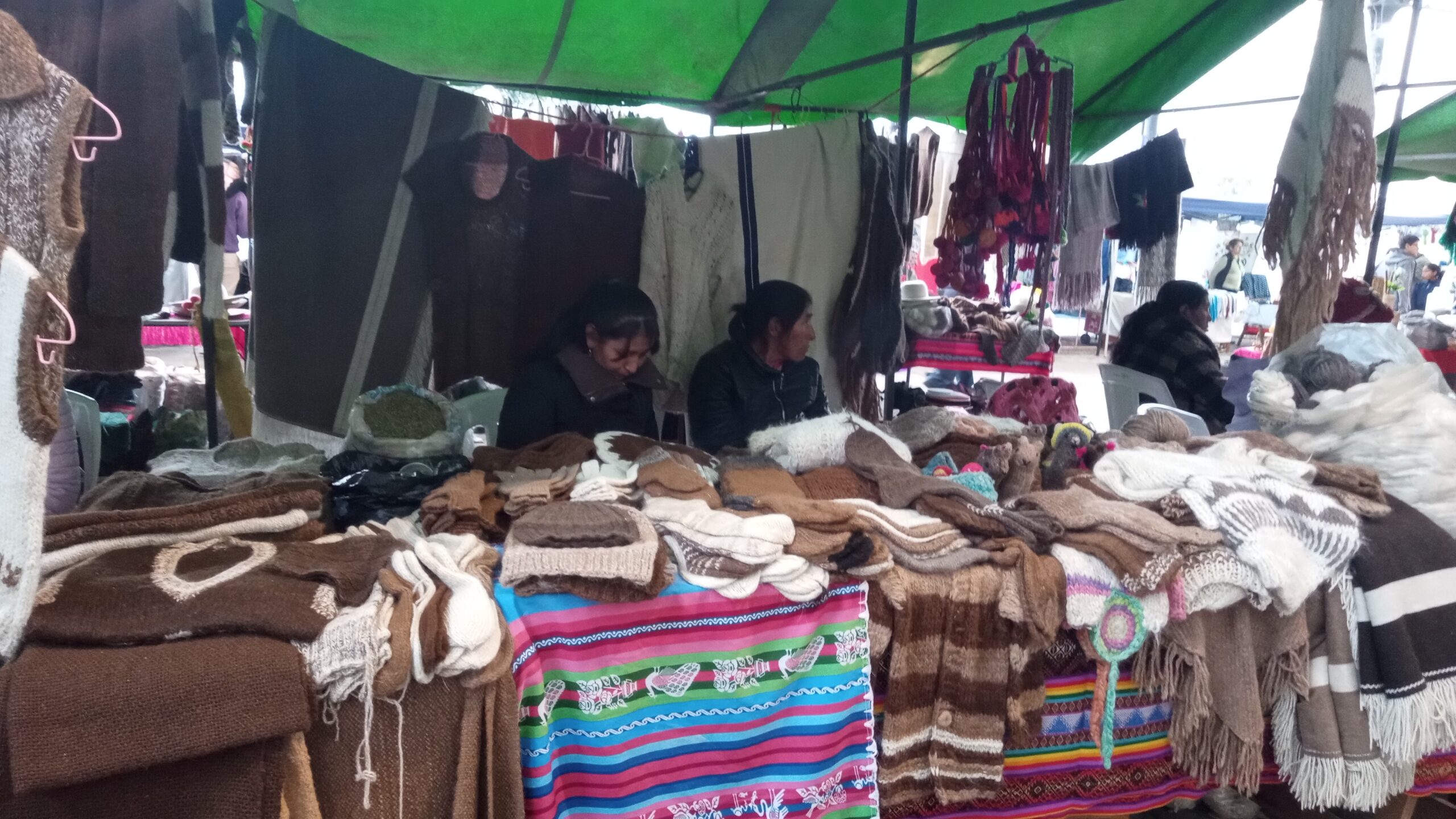 Cada rincón de la feria fue un universo en sí mismo. Cada puesto, una historia. Las prendas de lana de llama —auténticas, cálidas, tejidas con saberes ancestrales— se mezclaban entre ruanas, medias, ponchos y sombreros bordados por las manos pacientes y talentosas de mujeres de Caspalá, de Mina El Aguilar, de tantas localidades que traen consigo siglos de memoria textil.