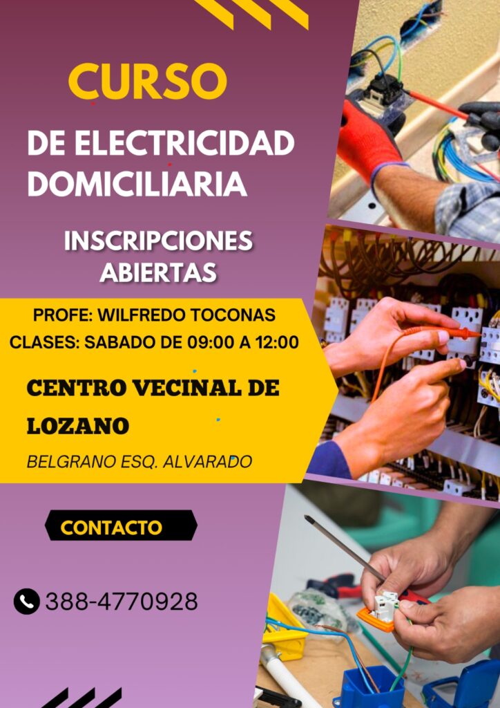 Cursos de electricidad en el Centro Vecinal de Lozano Aya 9 marzo, 2025 0 Educación Comparte esto:Entrada Haz clic para enviar un enlace por correo electrónico a un amigo (Se abre en una ventana nueva) Correo electrónico Haz clic para compartir en Telegram (Se abre en una ventana nueva) Telegram Haz clic para compartir en WhatsApp (Se abre en una ventana nueva) WhatsApp Curso de electricidadLozano