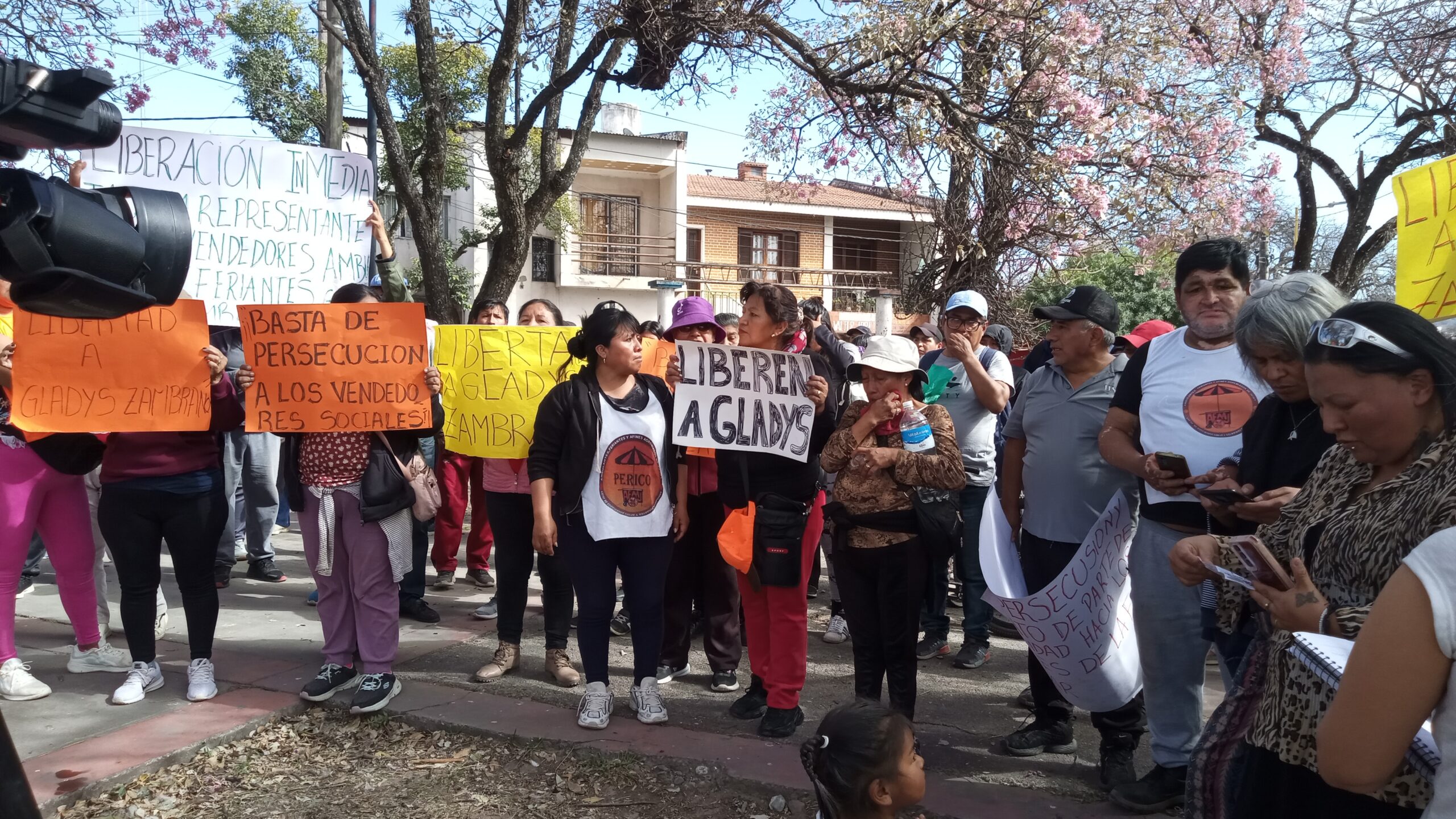 Vendedores ambulantes, referentes gremiales , exigieron este viernes la liberación de Gladys Zambrano. Denuncian hostigamiento municipal, secuestro de mercadería y persecución en las ferias.