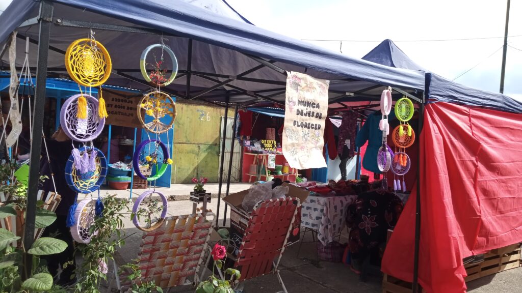 Todos los días, cargan juntos sus plantas y accesorios de jardinería, instalan su gacebo y se organiza para la venta. “Día no trabajado es día sin ingreso”, cuenta Patricia, quien jamás recibió ayuda estatal y siempre salió adelante gracias al trabajo y la salud. Sus cartelitos de aliento —hechos por su hija— acompañan sus productos, combinando mensajes de fe con etapas del crecimiento de las plantas.