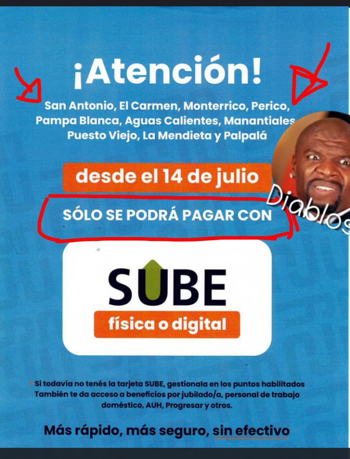 Ell gobierno de la provincia de Jujuy conjuntamente con las empresas que realizan el recorrido en las localidades de Perico , Monterrico y Carmen San Antonio Puesto Viejo , Los Manantiales ,la Mendieta, , Palpalá ,solo desde el 14 de julio solo con la tarjeta SUBE podrán realizar estos recorridos los usuarios
